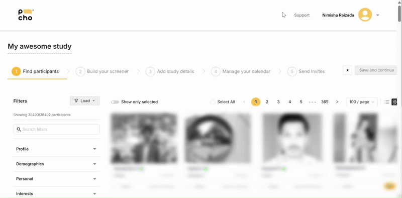 Poocho gives you access to a curated, in-house panel of real people excited to share their opinions. Use our filters to narrow down on your dream Participants. We have demographic filters such as gender and age, and even nerdier filters like Last session date, Internet browsing behaviour and Investments.